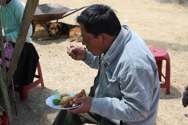 | As we drove into the town of Chaquicoche we saw a field where lambs were being slaughtered. Apparently that is standard procedure for market day. |